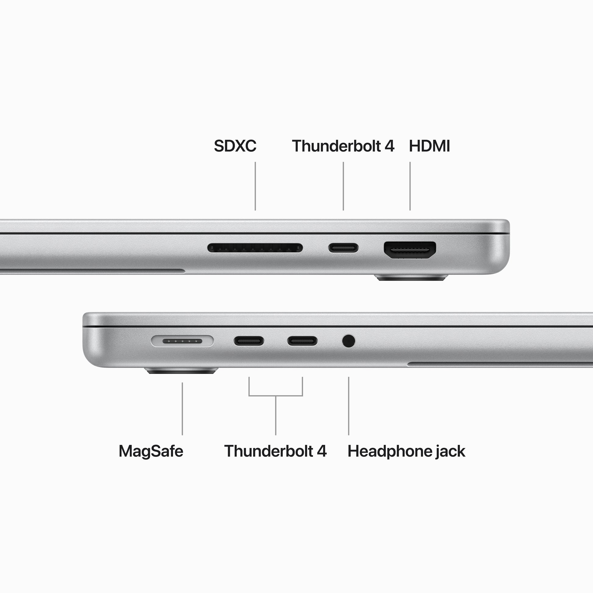 - CONNECT IT ALL—This MacBook Pro features a MagSafe charging port, two Thunderbolt / USB 4 ports, an SDXC card slot, an HDMI port, and a headphone jack. Enjoy fast wireless connectivity with Wi-Fi 6E5 and Bluetooth 5.3. Supports one external display.